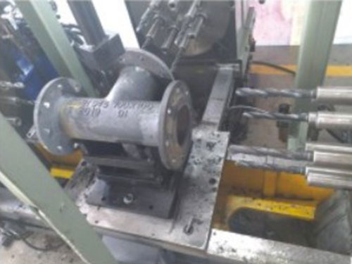 2、加工:在加工過程中機床采用動力頭同時工作的方式同時完成法蘭上的多個孔的鉆孔工序,節拍2分鐘以內